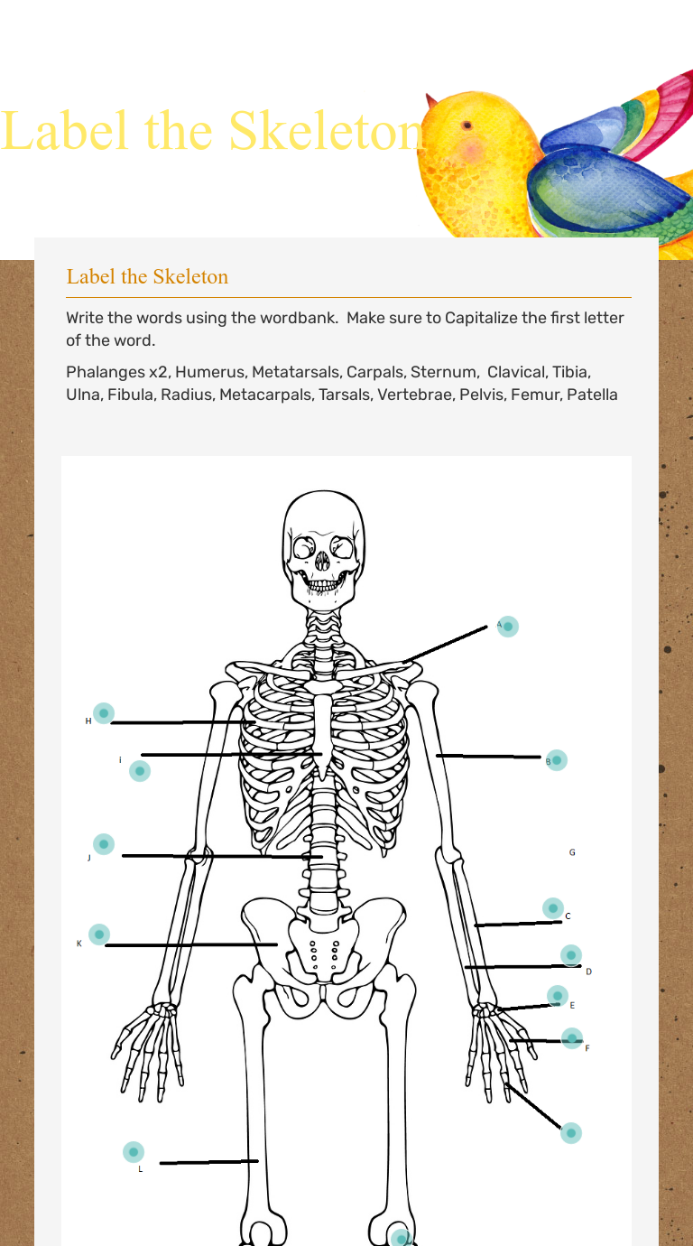 PDF Label The Carpals And Tarsals Label The Carpals And Tarsals the human skeleton bones of the skeleton teachpe com. the skeletal system e missions. port manteaux word maker onelook dictionary search. the human skeleton the skeleton amp bones anatomy. welcome to ms stephens anatomy and physiology and. label the human skeleton enchantedlearning com. the human skeleton DANIELA ORTEGA - Label the Carpals and the Tarsals.pdf View DANIELA ORTEGA - Label the Carpals and the Tarsals.pdf from COM MISC at Arleta High School-Arleta. Label the Carpals and the Tarsals talus i. _ calcaneus j. _ naviclar k. _ cuboid l. _ medial Solved Label the skeleton in the chart provided using proper | Chegg.com Anatomy and Physiology questions and answers Label the skeleton in the chart provided using proper names of bones. Label the Carpals and Tarsals as a group. Also, complete the chart below the skeleton pertaining to the musculoskeletal system А N А B B C D E M G H 1 K L M N o D G H K I j