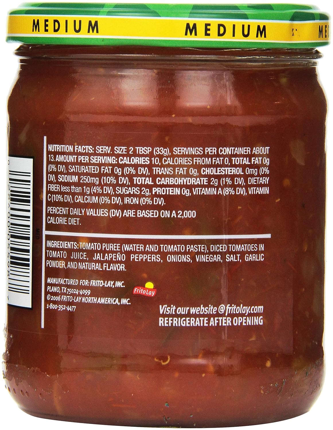 Grocery Store Red Salsas, Ranked From Worst to Best For consistency, I selected salsas labeled as "Medium" spicy whenever possible and avoided those that contained fruits or alternate flavorings. The salsas were judged on the following factors: Flavor (salt, spice, tang) Texture (the chunky/smooth balance) Freshness (can I taste the jar this has been sitting in?) Tostitos Salsa, Medium Chunky Salsa, 15.5 Oz. Jar - Walmart.com This Medium Tostitos Chunky Salsa is a tasty addition to your pantry. It is ideal for eating with tortilla chips, corn chips, meals and more. Made with ripe tomatoes, jalapenos, onions and garlic, this chunky salsa features a moderate heat level. It adds a flavorful kick to snacks, recipes and much more. Each jar measures 15.5 oz. Tostitos Salsa Nutrition Label - Tostitos Chunky Habanero Salsa Hot 1 X ... Tostitos chunky salsa medium 46.50 ounce glass jar by frito lay nutrition facts and analysis per (33.0 g) ; Learn what you need to know to understand nutrition labels. Calories are more prominent, "added sugars" is in while "calories from fat" is out, and the serving size is, in many cases, the whole package. Tostitos, Medium, Chunky Salsa Dip - SmartLabel™ Tostitos. Tostitos, Medium, Chunky Salsa Dip. Net Wt 15.5 OZ (439.4 g), Jar . 028400055987. Nutrition. Ingredients. Allergens. ... Product Information Can Change At Any Time. Please Refer To Your Product Label For The Most Accurate Nutrition, Ingredient, Allergen And Other Product Information. Information updated on 24-May-2022 by Tostitos ...