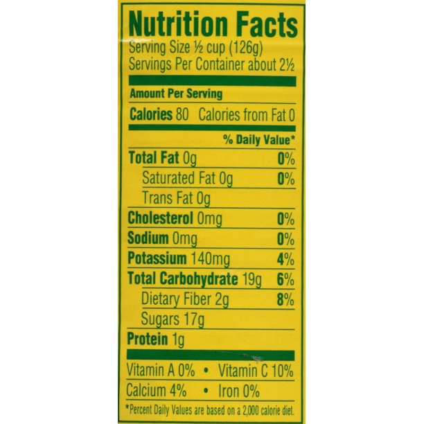 Nutrition Facts for Dole Mandarin Oranges Fridge Pack Nutrition Facts for Dole Mandarin Oranges Fridge Pack • MyFoodDiary® Nutrition Facts Serving Size cup 0.5 cup = 122g Amount Per Serving 90 Calories % Daily Value* 0% Total Fat 0g 0% Saturated Fat 0g Trans Fat 0g 0% Cholesterol 0mg 0% Sodium 10mg 7% Total Carbohydrate 21g 2% Dietary Fiber 0.5g Total Sugars 20g 8% Includes 4g Added Sugars