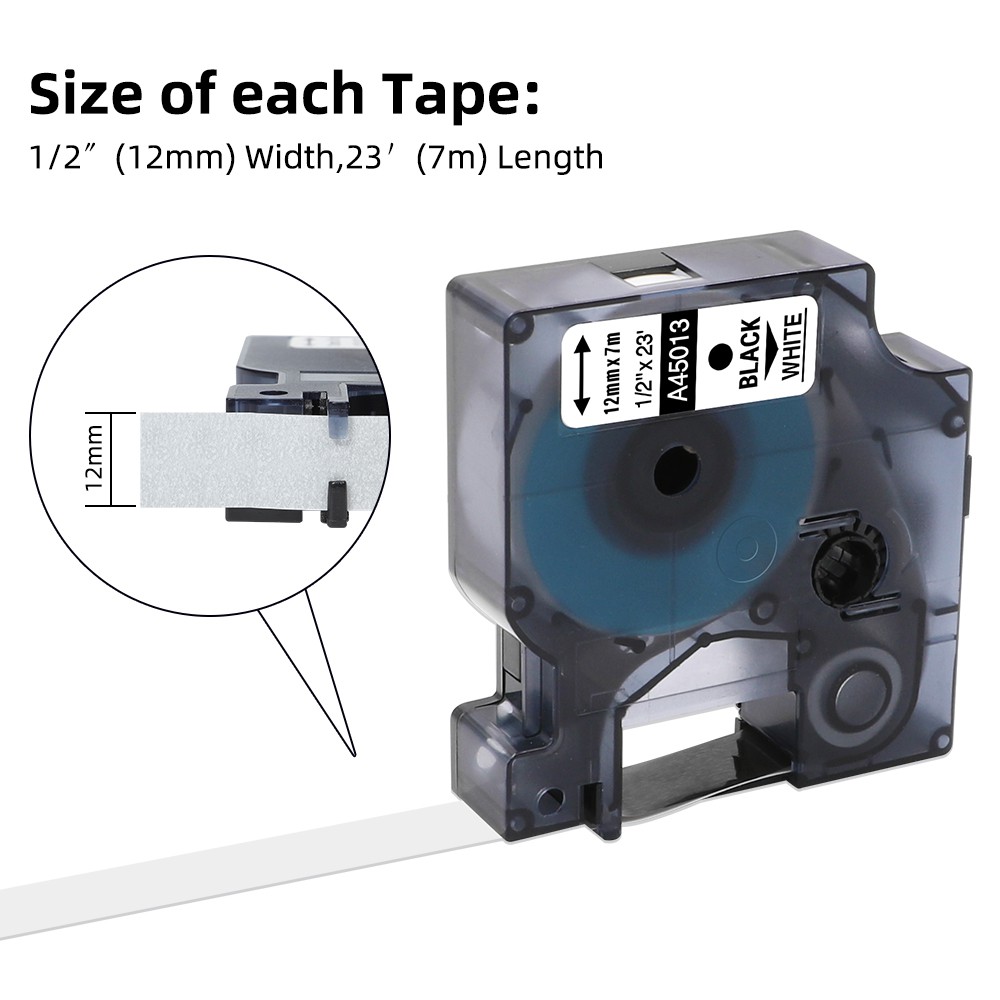 Anycolor 45013 Penggantian Pita Label untuk Dymo D1 Label Tape ACL-45013 S0720530 Hitam pada Putih 12mm untuk Dymo LabelManager 160 280 420P 210D 360D ...