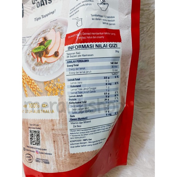Quaker Rolled Oats Nutrition | livestrong Quaker oats nutrition facts include 8 percent of the recommended daily allowance for iron, according to quakeroats.com. It is also a good source of the B vitamin thiamin, which means that it provides more than 10 percent of your daily needs. Quaker rolled oats also provide 2 percent of daily potassium needs, and 10 percent for phosphorus and ... Quaker Oats Label - This Nutrition Published on: 14/01/2021 | Last Updated: 07/04/2021. Learn more information about quaker oats label. In this article we'll discuss quaker oats label. Quaker Oatmeal Nutrition Label - This Nutrition Nutrition for bodybuilders and fitness athletes. Liver Recovery Nutrition. Sports Nutrition For Beginners. School-Aged Child Nutrition - Nutrients and Energy. Nutrition For A Healthy Lifestyle: Healthy Foods, Life Hacks, Menus. Quaker Instant Oatmeal Original Allergy and Ingredient Information INGREDIENTS and MAY CONTAIN STATEMENTS:Signup to Read the Label. It looks like Quaker Instant Oatmeal Original is Free From a total of: 9 different TOP 14 Allergens. We found 23 other products Made By quaker instant oatmeal that either contain or have been processed in a facility with 9 other TOP 14 allergens.
