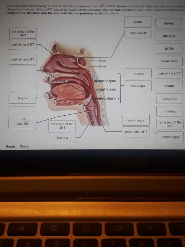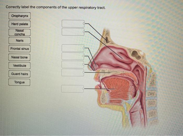 quizlet.com › 548480922 › ch22-respiratory-system-hwch.22-Respiratory System-HW Flashcards | Quizlet Correctly label the components of the upper respiratory tract-trachea-the "windpipe"-larynx: vestibular fold-pair closes larynx during swallowing-larynx: epiglottis-guard the superior entrance to the larynx-hard palate-floor of the nasal cavity-meatuses-narrow air passages-nasal concha-turbinate