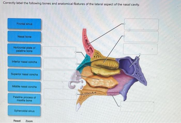 Correctly label the anatomical features of the nasal cavity.