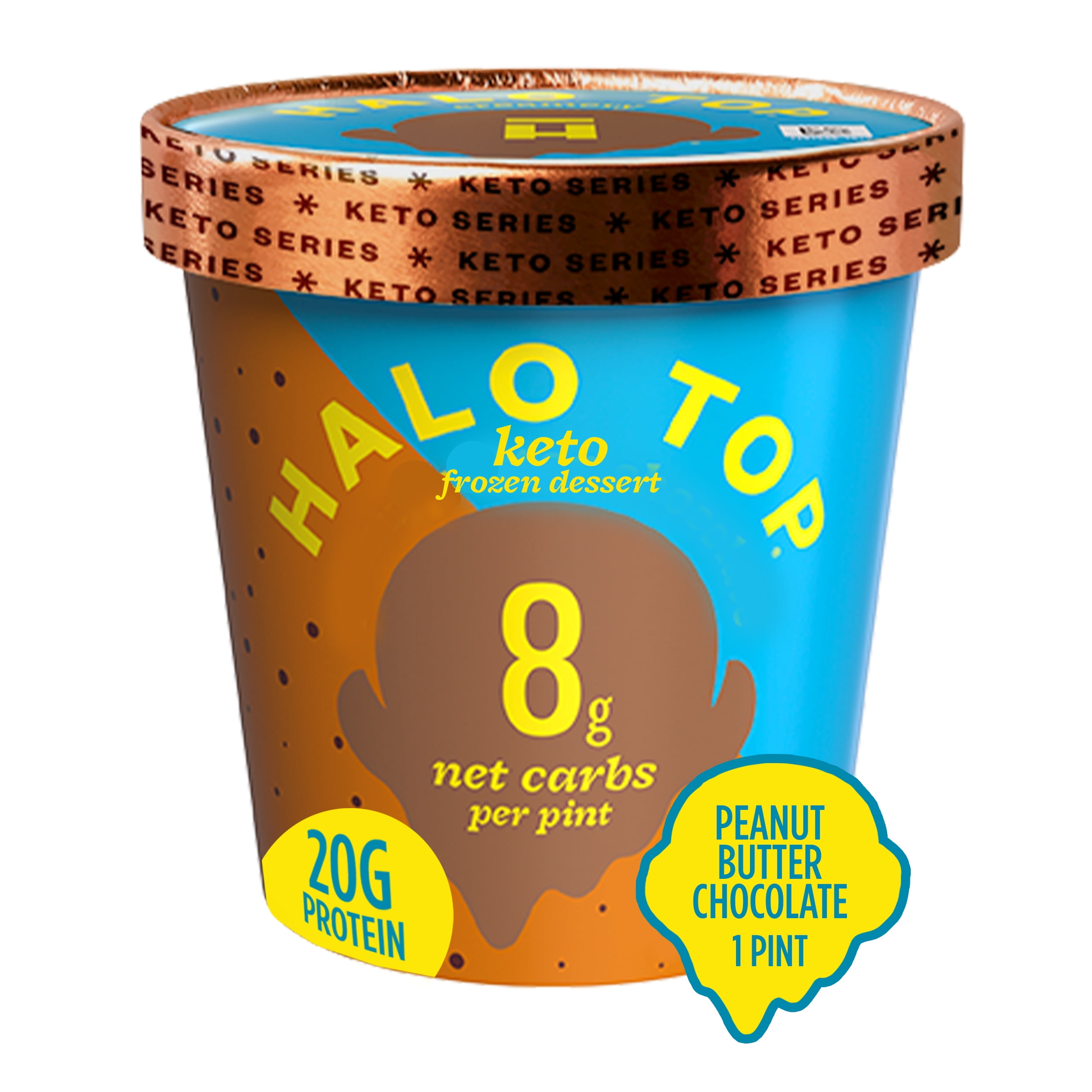 Peanut Butter Chocolate | HALO TOP® Looking to limit carbs, not happiness? Introducing the Halo Top Keto Series: 7 delicious flavors of creamy goodness all with fewer calories and less sugar than leading ice creams. The only thing better than mini-peanut butter cups and rich chocolate syrup is knowing a whole pint is just 8g net carbs. It's a Keto game-changer. *per Container
