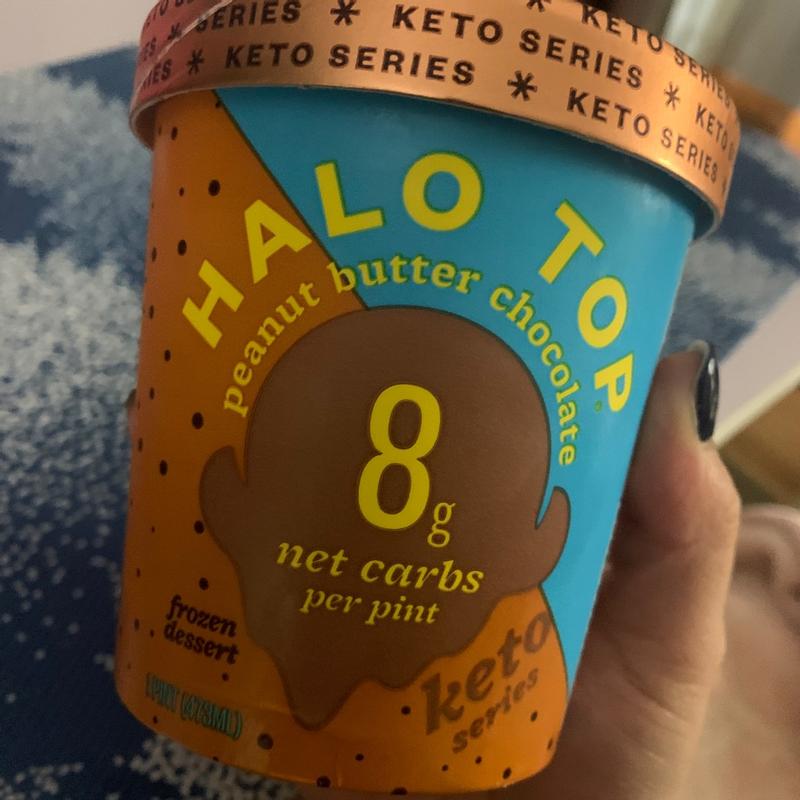 Halo Top Keto Peanut Butter Chocolate Frozen Dessert - 16oz Smart Indulgence: Only 2 grams of sugar and 210 calories per serving. Keto Friendly: 22 grams of protein and Only 8 grams of net carbs per container. Delicious Flavor: Made with quality ingredients, our creamy vanilla-flavored low-fat ice cream alternative is mixed to perfection with mini peanut butter cups and rich chocolate syrup.