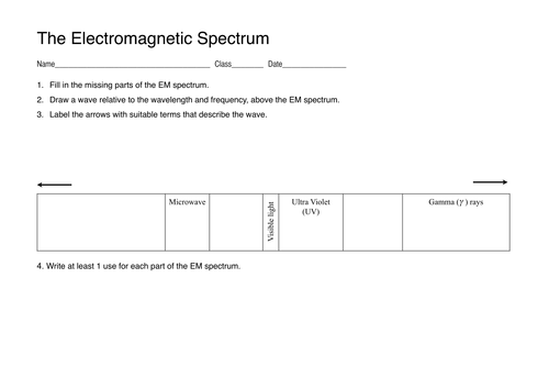 Label the Electromagnetic Spectrum - Labelled diagram - Wordwall Label the Electromagnetic Spectrum. Share Share by Elizabetheck. G6 G7 G8 Science. Show More. Like. Edit Content. Embed. More. Leaderboard. Show more Show less . This leaderboard is currently private. Click Share to make it public. This leaderboard has been disabled by the resource owner. This leaderboard is disabled as your options are ...