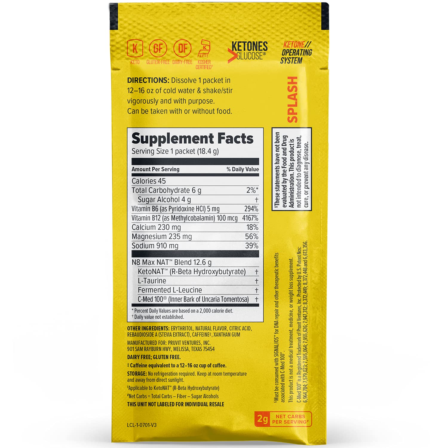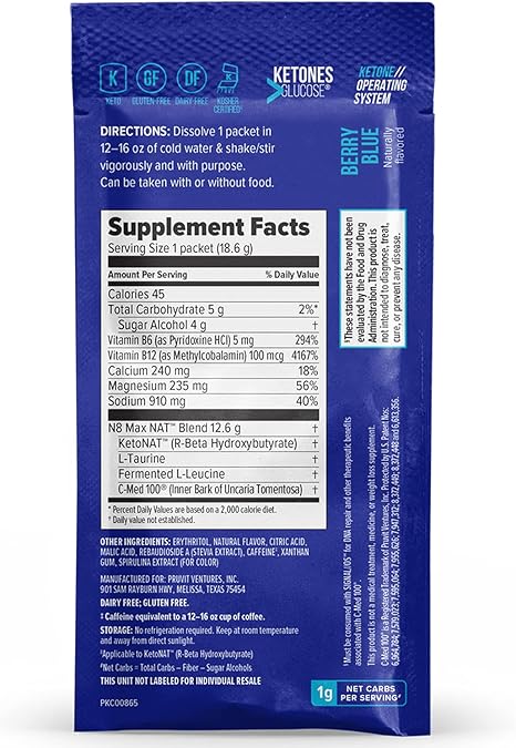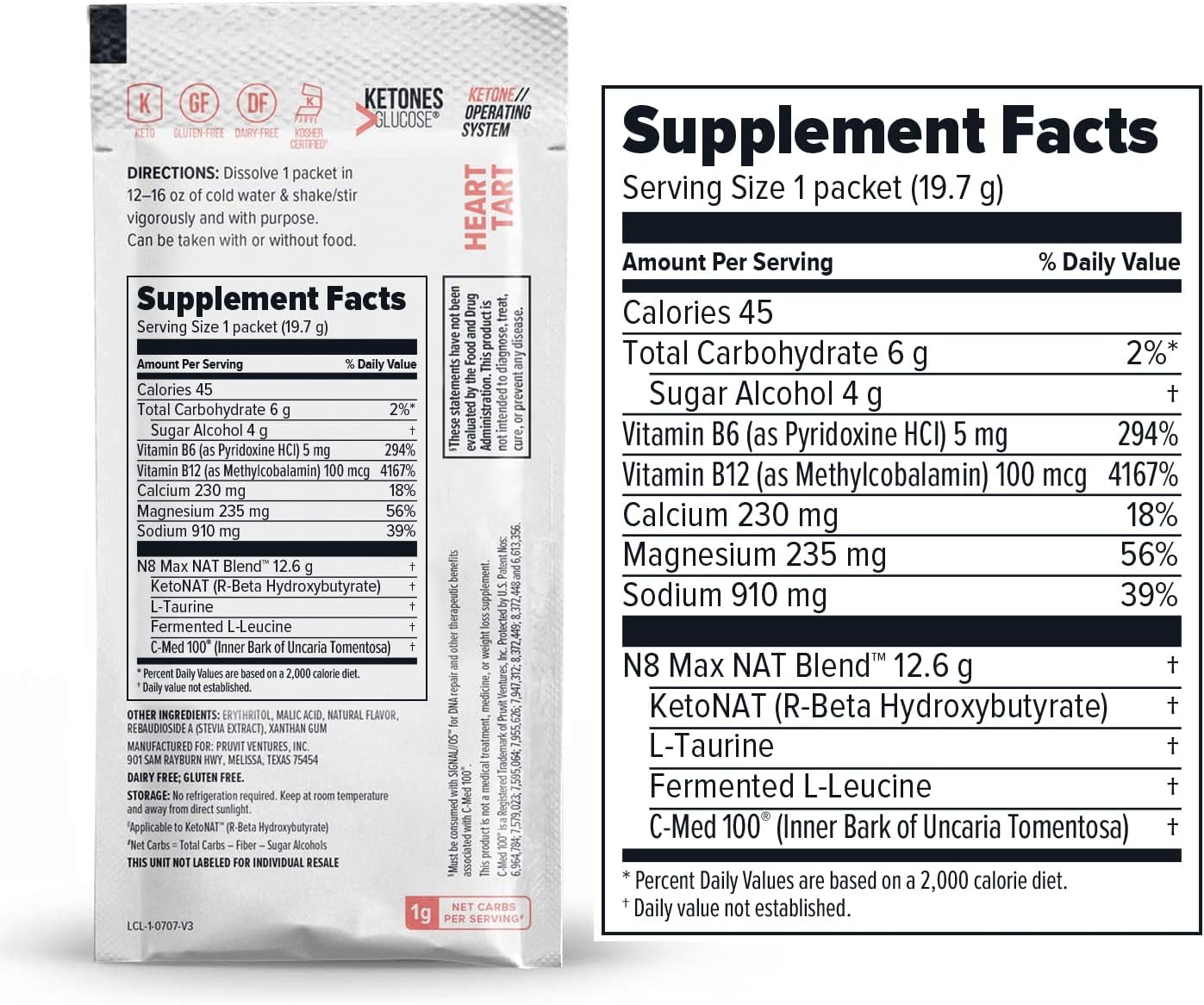 Pruvit nutrition label