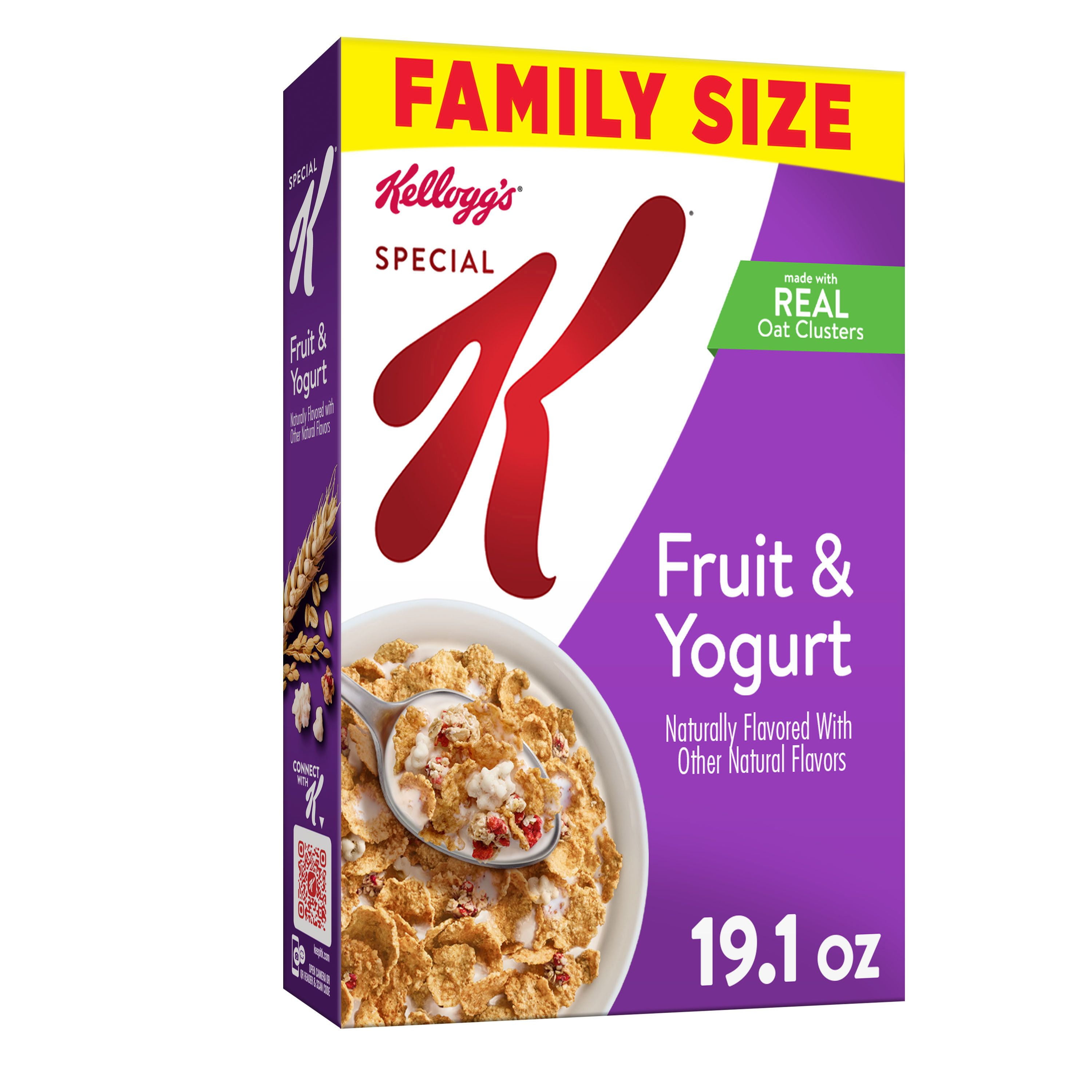 Kellogg's® Special K® Fruit & Yogurt Cereal Special K® Fruit & Yogurt Cereal has crunchy rice and wheat flakes with clusters of oats, fruit and yogurt, for a healthy and delicious way to start your day. Nutrition Facts and Ingredients Select pack size: 19.1oz 12.5oz 13oz