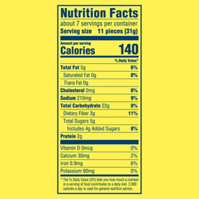 Nabisco Wheat Thins Original Crackers - Shop Snacks & Candy at ... Shop Nabisco Wheat Thins Original Crackers - compare prices, ... Always read labels, warnings and directions before using or consuming a product. Product - Wheat Thins Wheat Thins NABISCO WHEAT THINS TOASTED CHIPS VEGGIE 1X8.100 OZ *click for nutritional info Close X. Nutrition Facts Serving Size: 1 oz (28g/about 13 chips) Serving per container About 8. Amount Per Serving Calories 120; Calories from Fat % Daily Value* ... EWG's Food Scores | Wheat Thins Organic Original 100% Whole Grain Wheat ... ingredients: organic whole grain wheat flour, organic expeller pressed high oleic sunflower oil and/or organic expeller pressed high oleic safflower oil, organic sugar, organic cracked whole grain wheat, organic cane syrup, organic cornstarch, sea salt, organic barley malt extract, leavening (calcium phosphate, baking soda), vitamin e (mixed … Nabisco Wheat Thins Original 9.1 oz - SmartLabel™ - mondelez May 24, 2022 ... Nutrition Facts · Calories 140 · % Daily Value * · Total Fat 5 g 6.0% · Saturated Fat 0.5 g 3.0% · Trans Fat 0 g · Cholesterol 0 mg 11.0% · Sodium 200 ...