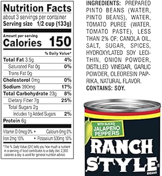 Ranch style beans nutrition. Ranch-Style Beans Recipe: How to Make It - Taste of Home Ingredients. 1 package (16 ounces) dried pinto beans; 1 quart water; 1 can (6 ounces) tomato paste; 1/2 cup chopped onion; 1 garlic clove, minced; 1 to 2 tablespoons chili powder Ranch Style Beans Recipe - Food.com Note: You can reduce cooking time by soaking beans overnight or using or (1 Hour soak method). Add ¼ Cup of tomato puree with additional 1 tsp brown sugar in the last hour. Adjust salt and sugar to your liking. Crockpot Ranch Pork Chops and Potatoes - WonkyWonderful Jul 06, 2019 · How To Make Ranch Pork Chops In The Slow Cooker. Sear pork chops in skillet over medium/high heat. (optional) Mix oil, ranch and apple cider vinegar. Place potatoes and pork chops into slow cooker. Pour ranch mixture over the top and toss to coat potatoes and chops evenly. Top with butter cubes. Cooking on high heat for approximately 3 hours. Ranch Style Beans - The Seasoned Mom May 05, 2020 · Ranch Style Beans with Meat: As written this Ranch Style Beans recipe is vegetarian and vegan. If you prefer, you can add a ham hock or cooked bacon to your pot of beans. Nutrition: This healthy vegetarian dish has about 222 calories per serving, 12 grams of protein, less than 1 gram of fat and 42 grams of carbohydrates. Pinto beans are an ...