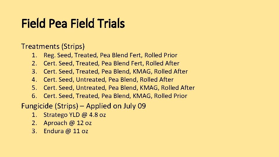 Multi-Product Comparison Stratego YLD® + Fortalis® - SD Soybean Stratego YLD a group 3 and 11 fungicide, was applied on July 28th at R1 (flowering) in strips, at 4.5 oz./acre. Fortalis foliar N product (8-0-0), was also applied on July 28th at R1, at a rate of 14 oz./acre. Results