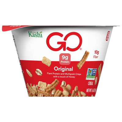 Kashi GO® Cereal Original - Kellogg's Nutrition Facts & Ingredients Where To Buy Highlights Power up with the delicious taste of sweetened honey-toasted whole grain puffs, crunchy cereal sticks, and crispy squares in every bite of this classic favorite. Every satisfying bowl is packed with fiber and 11 g of protein.