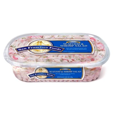 Sam's Club Seafood Salad | ThriftyFun I've never been to Sam's either, but I make one of those salads whenever imitation crab is on sale for a dollar. Just mix the broken up crab with some sour cream, celery, cooked pasta, hardboiled eggs and maybe salt and pepper to taste. Proportions are up to what you have on hand and what you like.